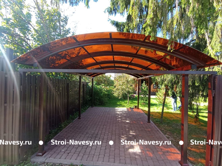 Арочный автонавес из монолитного поликарбоната для загородного дома